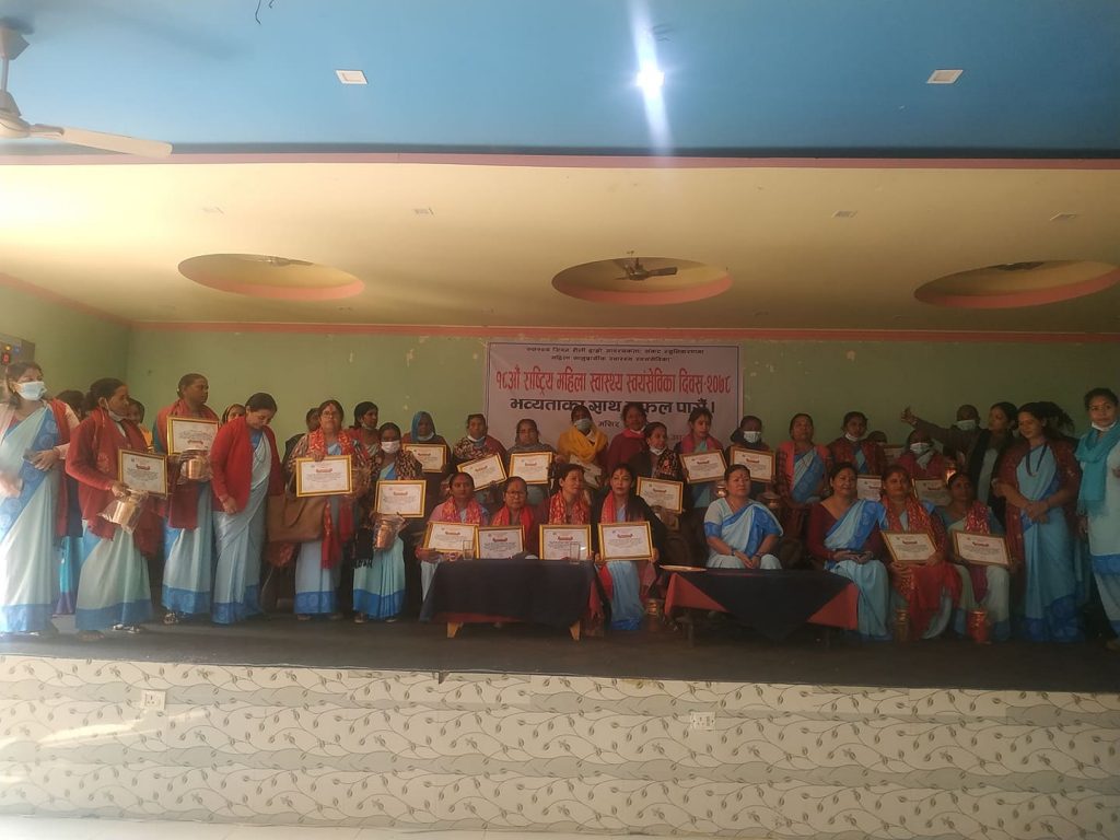 महिला स्वास्थ्य स्वयमसेविकालाई नेपालगन्जको सम्मान