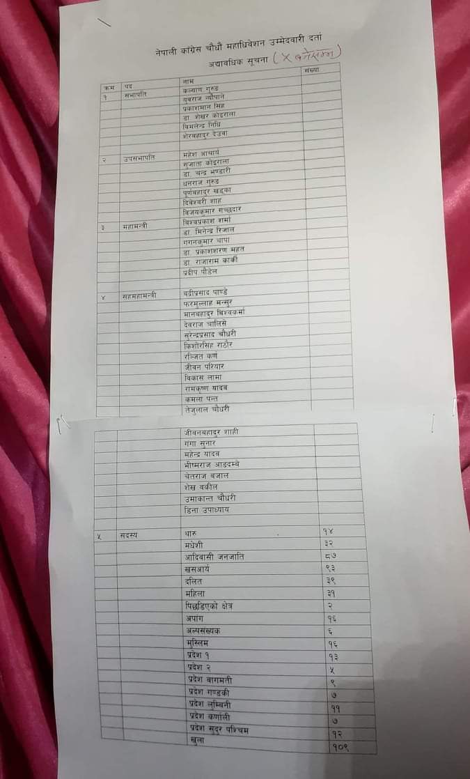 कांग्रेसको सभापति र महामन्त्रीमा ६-६ जना उम्मेदवार (सूचीसहित)
