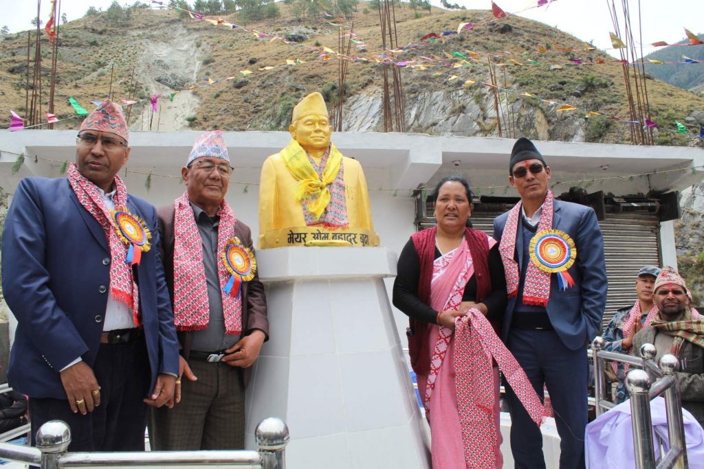 नगरकेन्द्रमा गरियो प्रथम मेयर ओमबहादुर बुढाको शालिक अनावरण