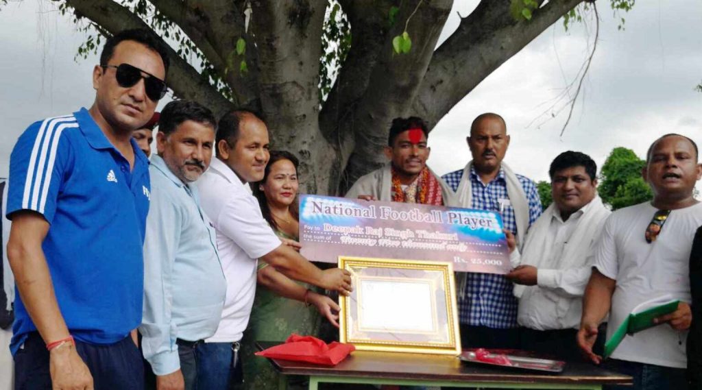 नेपाली राष्ट्रिय फुटबल टिमका खेलाडी ठकुरीलाई खजुरामा सम्मान