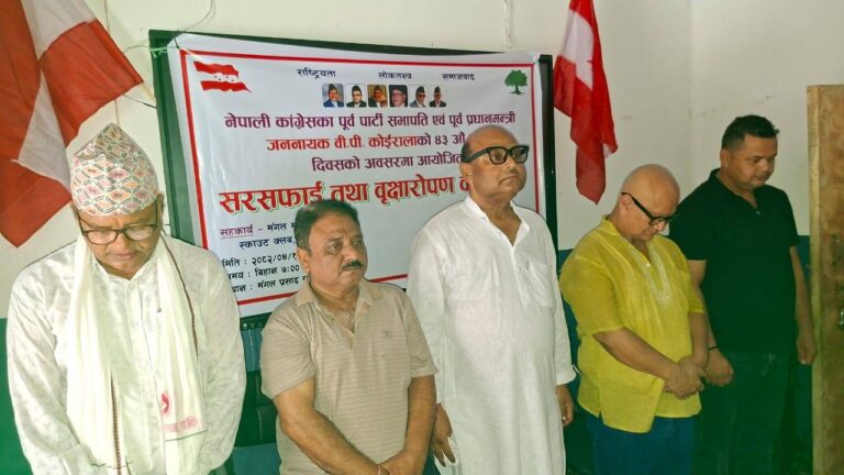 क्षेत्रीय सभापति गुप्ताको अध्यक्षतामा भएको सरसफाई तथा वृक्षारोपण कार्यक्रममा केन्द्रीय सदस्य बाल्मिकी, बाँके सभापति गौडेल, सचिव कोइराला, कोषाध्यक्ष बस्नेत, पूर्व मन्त्री हमाल, युवा नेता सुनिल राणा, महिला नेत्री थापामगर, विद्यालयका प्रधान अध्यापक सन्ध्या गुप्तालगायतले विपी कोइरालाको बहुआयामिक प्रतिभा र काँग्रेसको सांगठानिक अवस्थाका बारे प्रकाश पार्नुभएको थियो ।